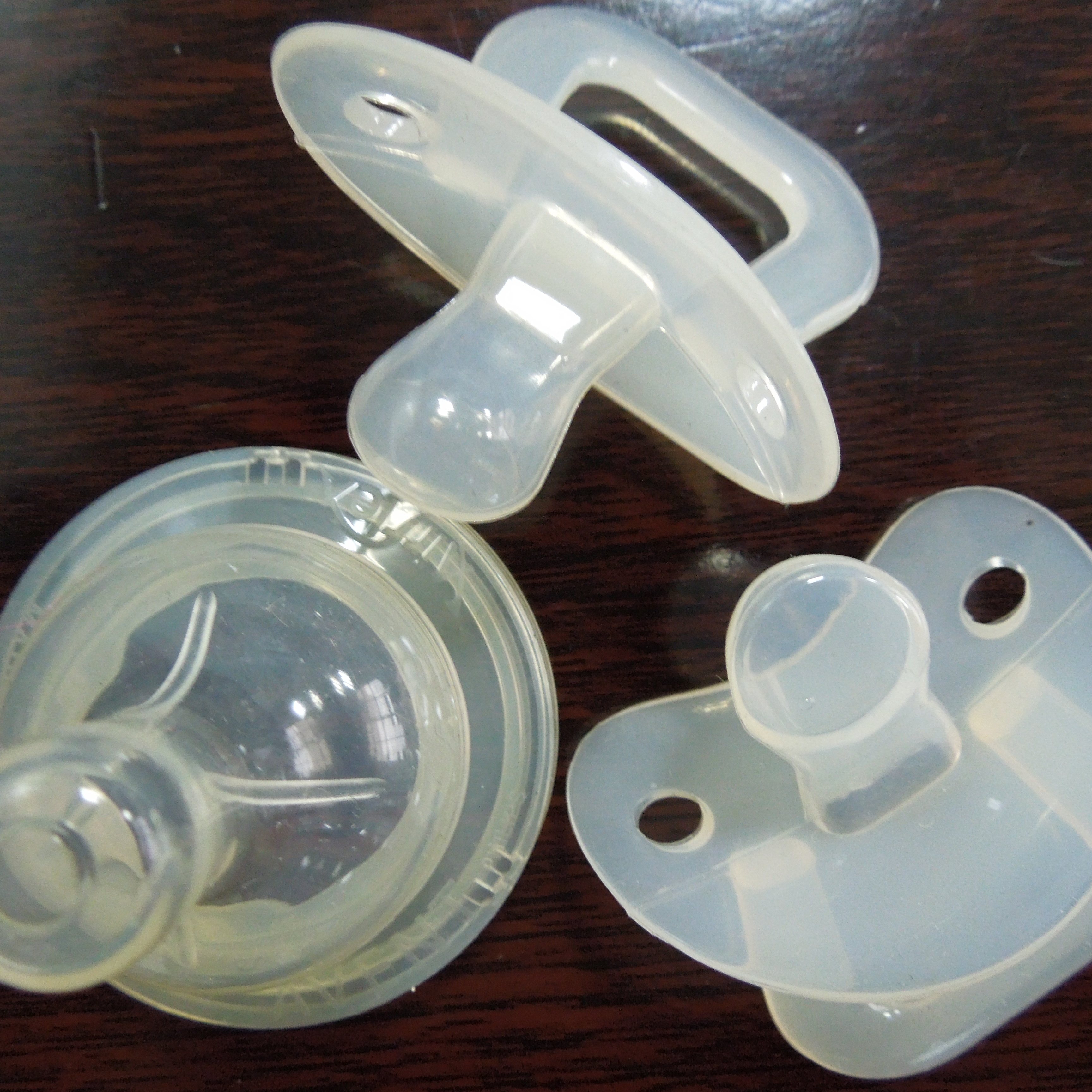 一般的硅膠日用品都是環(huán)保純硅膠制成,如果涉及到食品衛(wèi)生,就得采用食品級硅膠,食品硅膠是一種硅酸縮聚而成的無機(jī)高分子膠體材料,主要成份是SiO2·nH2O,其含量在98%以上,無毒無味,化學(xué)性能穩(wěn)定,在常態(tài)下除苛性堿和氫氟酸外,不和任何酸堿鹽起反應(yīng)。由于它是一種膠體結(jié)構(gòu),所以具有很多微孔和很大的比表面積。食品級硅膠孔徑約為8-10nm,比表面積300-500m2/g,而且表面親水,對水有很強(qiáng)的吸收能力,在高濕情況下其吸水量可達(dá)自身重量的80%-100%以上。所以食品級的硅膠可以作為食品、藥品的外用干燥劑。由于食用硅膠是經(jīng)過精制和滅菌后,可以和食品藥品按需要量混合后直接保證食品的干燥并和食品一起食用,而對人體無任何毒副作用。我公司生產(chǎn)的硅膠奶嘴、硅膠口水兜、硅膠濾水籃、硅膠蛋糕模、硅膠蛋糕刷子等食用器具。下面有圖為證: